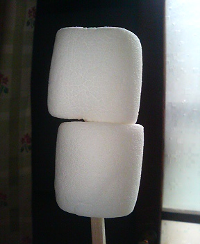 マシュマロを割り箸に刺す